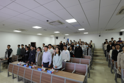 会议伊始,主持人孙梦宇隆重介绍参会领导老师以及学生代表,宣布会议开始,全场肃立,奏唱国歌。