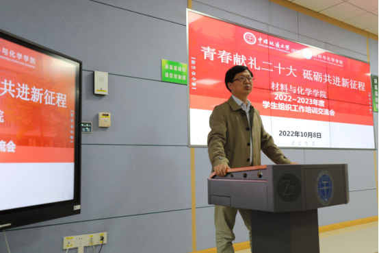 为了让学生干部更加深入的了解自身工作职能及组织结构,强化骨干服务意识,认真贯彻落实学院分团委组织的工作部署,材料与化学学院于2022年10月8日14点30分于南望山校区东教楼C0205召开“青春献礼二十大,砥砺共进新征程”学生组织工作交流会。会议由我院办公室孙梦宇主持,参加会议的有学院党委副书记余江涛老师,2020级辅导员侯亚飞老师,2022级辅导员李桂娇老师,环境学院学生会主席团成员王倩,计算机学院学生会主席团成员赵飞越以及av网站