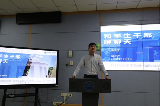紧接着,学院学生会指导老师,2020级辅导员侯亚飞老师以“和学生干部聊聊天”为题作交流报告。