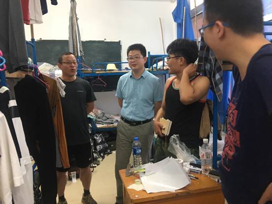8月25日,学院副院长周炜、办公室主任李晓晔受学院党委书记黄菊、院长夏帆的委托,前往实习基地看望学院师生,并为大家送来了解暑的西瓜。第二天,学院领导又和同学们一起出了一次野外。周炜对同学们在实习中表现的不怕苦不怕累的精神给与了充分的肯定,希望同学们能将学院优良的学风传统带过来,也希望同学们能通过这次实习把丰富的专业知识带回去。学院领导的亲切关怀让同学们心里暖暖的,大家深受鼓舞,倍感振奋。