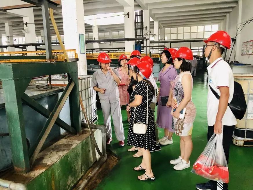 赣州稀土友力科技开发有限公司总工程师、89届优秀校友肖卫东女士(右二)带领团队成员走访企业