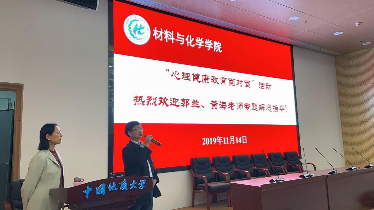 (通讯员:高虞涛)11月14日下午,av网站 “心理健康教育面对面”活动在材化楼110举行。学校马克思主义大学生心理健康教育中心郭兰教授、黄海副教授进行专题讲解交流,学院班主任学务指导老师和部分导师参加讲座交流,av网站 党委副书记余江涛主持活动。