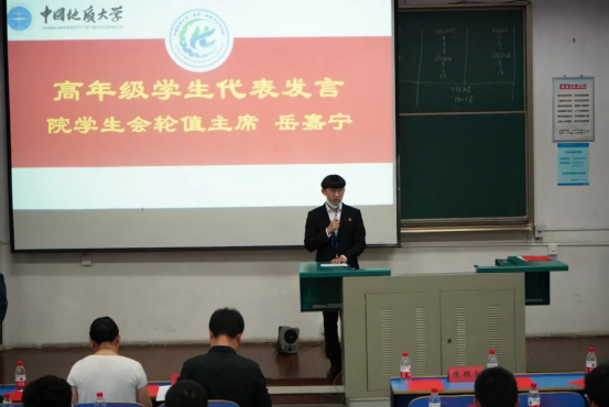 是学术氛围浓厚,活动影响广泛的学习圣地,他以自身学习和生活经历告诉学弟学妹们要加倍努力学习,塑造思想品德、提升综合素质。同时坦言道“大学不是同学们学习的终点而是一个崭新的起点,这就需要大家全面提高,全面发展,开拓出一片属于自己的海阔天空”。