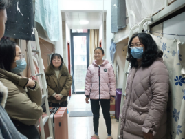 黄菊表示学院将继续为同学们在校期间的学习生活提供全面保障,同学们有任何生活和学习上的问题都可以向学院和老师反映。学院领导的看望慰问令同学们十分感动,同时也拉近了师生间的距离,有助于学院更加全面地了解学生学习生活情况。同学们纷纷表示会理解和遵守学校的各项工作安排,也会不断努力,珍惜这来之不易的在校学习时光,不辜负老师们的殷切期望。