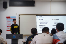 各部门介绍完毕后,经济管理学院学生代表谢琨淮进行发言,他首先代表经济管理学院全体师生向本次大会的顺利召开表示了祝贺;随后他从个人经历出发,分享了在学生组织工作的经验和感悟,他表示“做好分内之事” 是一名学生干部的底线,要在这个基础上互帮互助,向共同目标前进,更要主动思考,寻求创新;最后,他也向av网站