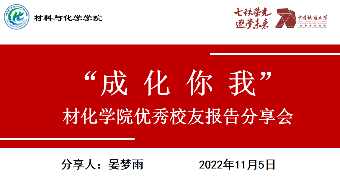 2022年11月5日,我院2012届优秀校友,武汉理工大学研究员、博士生导师、华盛顿创新学者、国家高层次青年人才晏梦雨研究员为同学们做分享,材料系主任梁玉军老师主持。