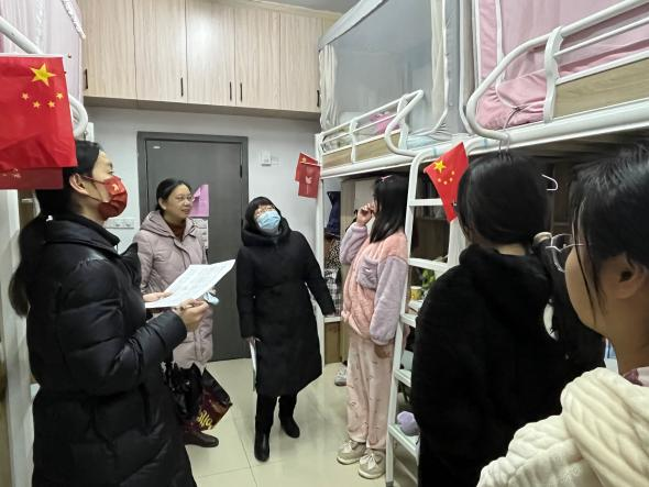 党委书记黄菊、副书记余江涛、化学系主任程国娥、材料系主任梁玉军及辅导员李桂娇一行深入宿舍走访慰问学生。老师们与同学们亲切交流,关心同学们的感染与康复情况,提醒同学们近期仍要做好自身防护,防寒保暖,当好自身健康第一责任人。此外,开学第一周同学们面临着上学期延期的期末考试,老师们十分关心大家的学习状况,提醒同学们安心、用心备考,尽最大努力取得良好成绩。