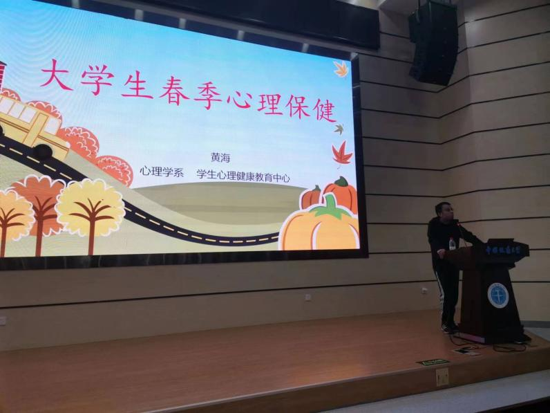 为进一步加强大学生心理健康教育,促进同学们人格的健全发展,我院邀请心理咨询中心黄海老师开展了《大学生春季心理保健》的主题讲座。帮助同学们完善心理建设,从而更好的调整学习状态,适应新学期,新生活。除了普适性的讲座,我院还建立了心理问题重点关注台账,对重点关注学生,各年级辅导员与学生骨干及时跟进,谈心谈话,提供帮助。