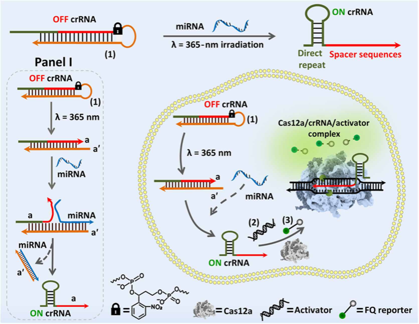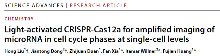 近日,av网站 夏帆教授/黄福建教授课题组在光激活CRISPR系统高效单细胞miRNA成像研究方面取得进展,相关研究成果以“Light-activated CRISPR-Cas12a for amplified imaging of microRNA in cell cycle phases at single-cell levels”发表于Science Advances (Sci. Adv. 2024,10, eadp616。 微小RNA(miRNA)是一类小的非编码RNA,它的异常表达与各种疾病的发生和发展密切相关,可作为癌症诊断、预后、进展和复发的生物标志物。然而,细胞内的miRNA含量很低,因此需要开发信号放大的miRNA检测方法。传统的miRNA检测方法,如实时荧光定量PCR(RT-qPCR)和滚环扩增(RCA),虽有较高的灵敏度,但在单细胞水平上的检测和成像仍存在挑战。 夏帆教授/黄福建教授课题组在前期光响应功能核酸生物传感研究基础上,发展了一种新的光激活CRISPR系统用于活细胞中miRNA-21的信号放大检测及其成像。该系统在单细胞水平上实现时空选择性激活,以评估miRNA-21在不同细胞周期阶段的相对表达水平,从而绘制单细胞阵列中不同细胞周期阶段的miRNA-21含量分布图。该方法为深入研究不同细胞周期中miRNA的功能,从miRNA水平上分析细胞周期调控的新机制提供了一种有力的分析手段。 该研究工作av网站 博士生刘红为论文的第一作者。希伯来大学Itamar Willner 教授、av网站 夏帆教授和黄福建教授为本文的共同通讯作者。该工作得到了国家自然科学基金重大项目,国家重点研发计划以及中-以国际合作等项目资助。(编辑:黄福建 审稿:梁本哲) 论文链接://www.science.org/doi/full/10.1126/sciadv.adp6166