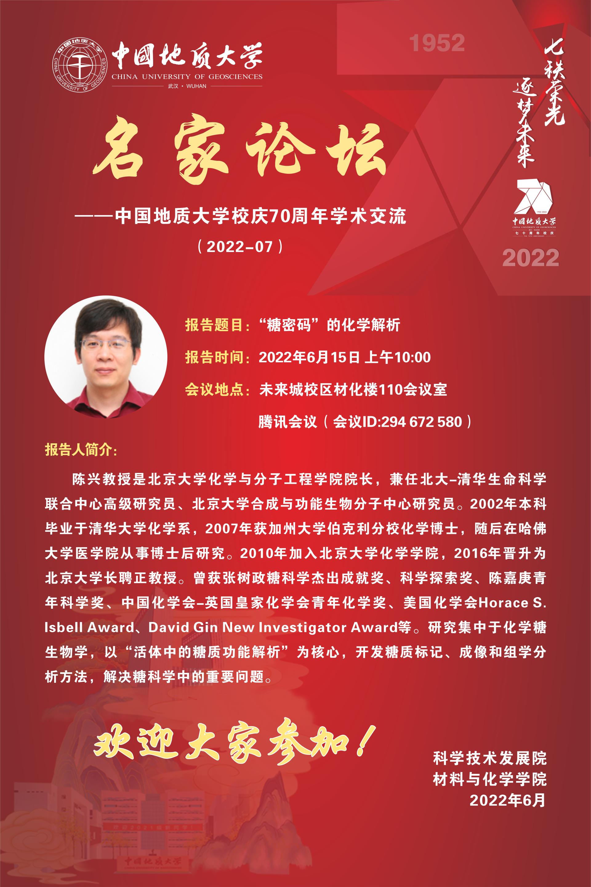 应av网站 邀请,国家杰青、北京大学化学与分子工程学院院长陈兴教授将与师生交流并讲座。
