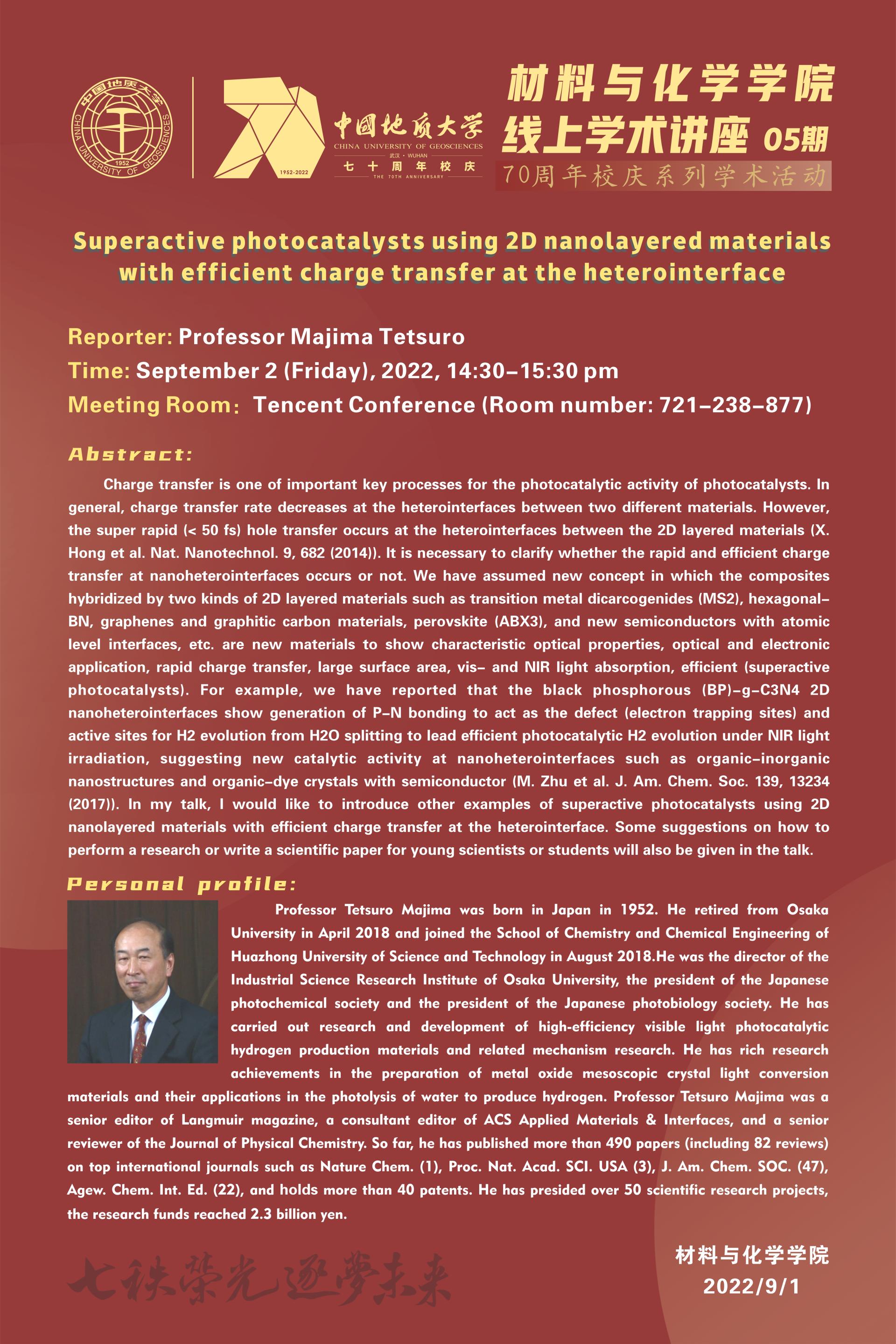 应av网站 邀请,华中科技大学化学与化工学院Tetsuro Majima教授将与师生交流并讲座。