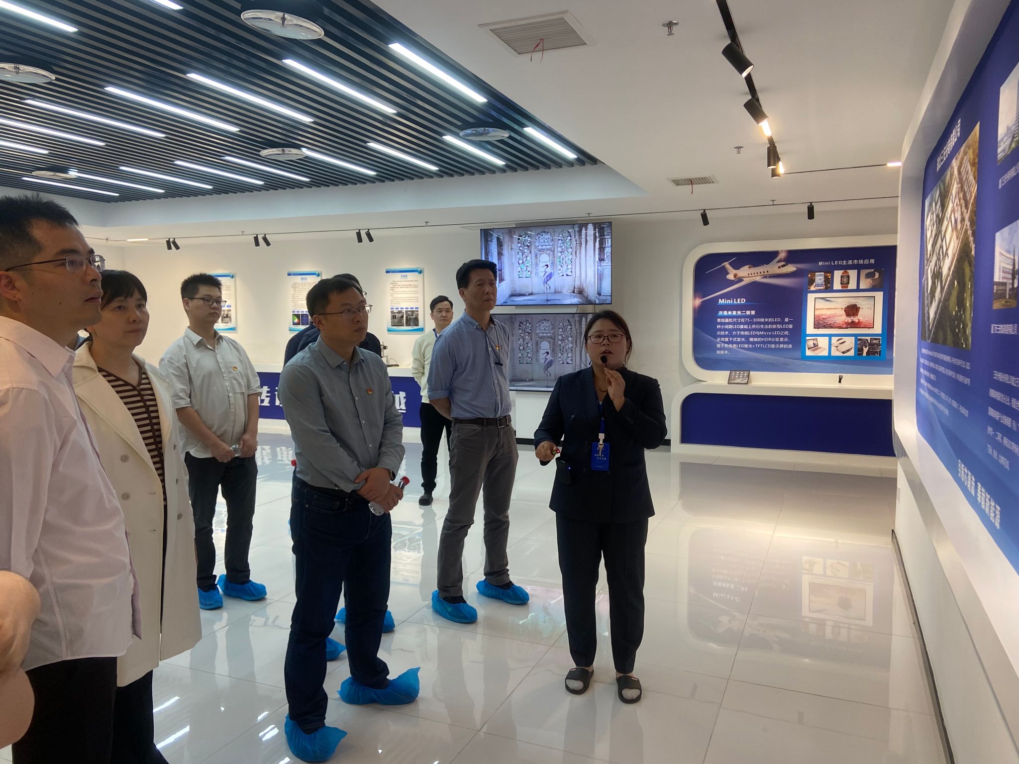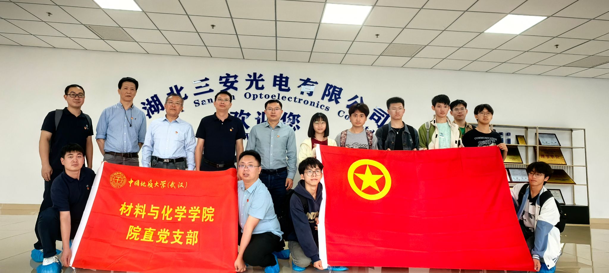 在三安光电公司,同志们走进公司展厅和生产、研发产线进行参观,在讲解员的介绍下,详细了解企业文化、企业战略、员工培养以及半导体、显示屏等主营产品研发等情况。随后,学院师生与企业高管、校友代表进行座谈,双方就产教融合、在校生培养、毕业生发展、校企合作等进行深入交流。