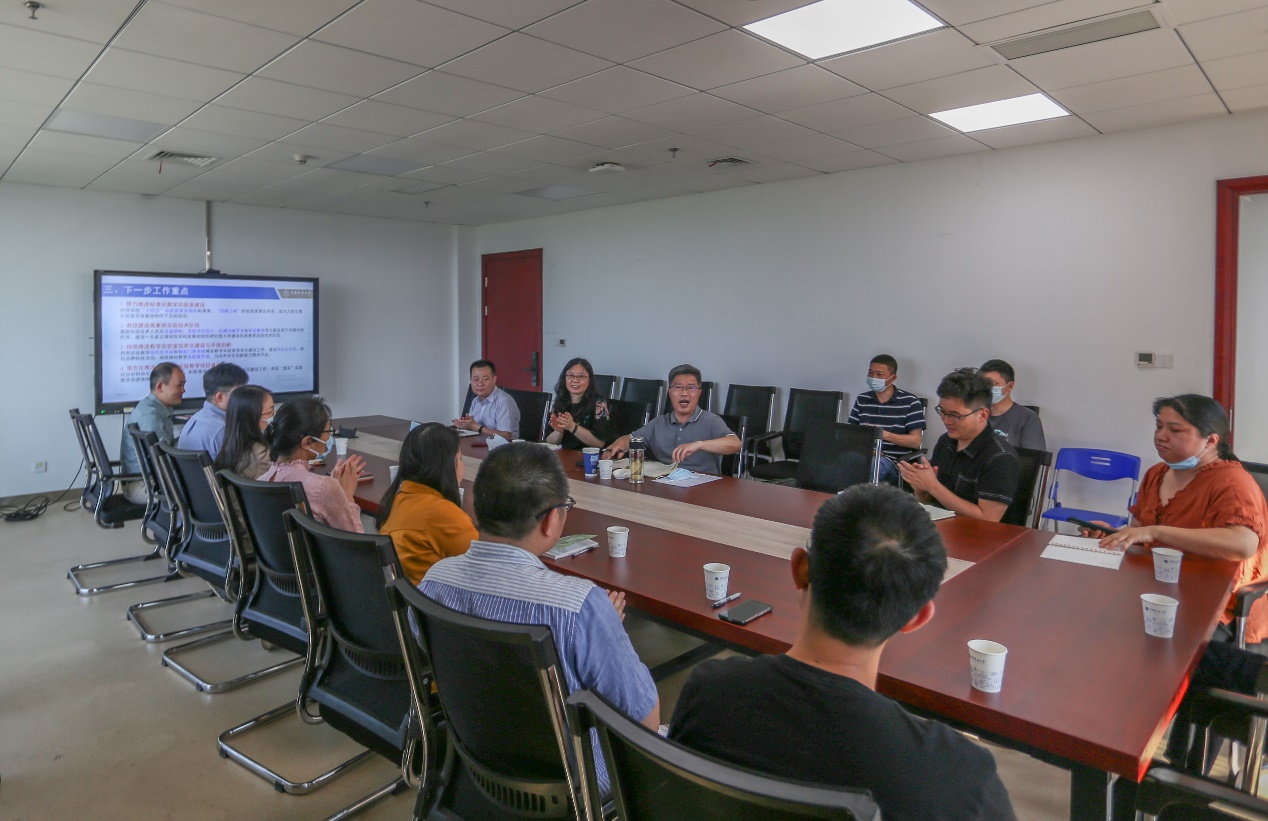 教学实验中心在实验教学服务和教学实验室管理工作中取得的成绩和未来发展目标进行了肯定,并指出化学类教学实验室建设与管理是我校本科生人才培养 “强基工程”的重要组成部分,要尽快争取化学类修购计划来建设标准化教学实验室,同时鼓励实验室管理老师主动参与教研及教材项目,更好地服务于人才培养与创新。针对中心提到的实验技术队伍人员不足的问题,王校长建议结合学院实验技术人员现状做好兄弟院校实验技术人员队伍建设调研工作。最后,王校长要求实验室管理一定要抓牢实验室安全工作,强调安全无小事,要在日常管理中把实验室安全工作落实到位。