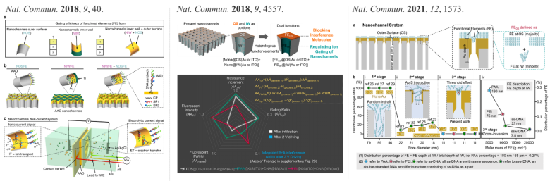 [1] Xinchun Li, Fan Xia*. Nat. Commun. 2018, 9, 40. Distinct functional elements for outer-surface anti-interference and inner-wall ion gating of nanochannels. //doi.org/10.1038/s41467-017-02447-7