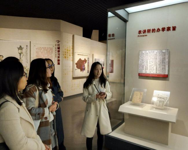 在陈列馆,各类文献、教学员手稿、老照片、书籍、毕业证章、汉阳造等珍贵文物都成为支部成员口述历史的重要参考,支部成员人人讲历史,人人受启发。通过农讲所的参观,支部成员深刻认识到红色政权来之不易、新中国来之不易、中国特色社会主义来之不易,同时,老一辈革命家为民、为国牺牲的革命精神让每一位支部成员深受触动。支部成员贾子龙感叹道,“这些革命前辈们用自己的鲜血和生命为我们创造了今天的美好生活,我们应该时刻牢记革命光荣传统,珍惜当下,努力学习,主动担当和奉献。”