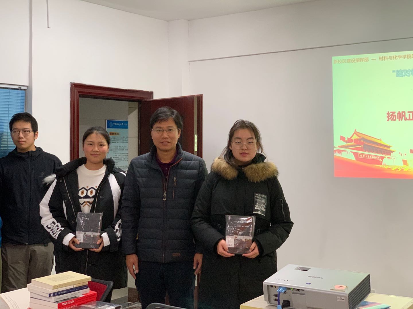 活动会上,邓云涛、游金彪代表新校区建设指挥部党支部向03L191班赠送书籍和学习用品。