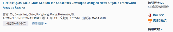 王欢文教授2018年发表在《先进能源材料》(影响因子:21.875)上的研究论文《基于二维金属有机框架作的柔性准固态钠离子电容器》(av网站