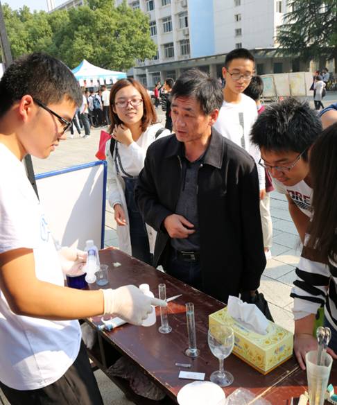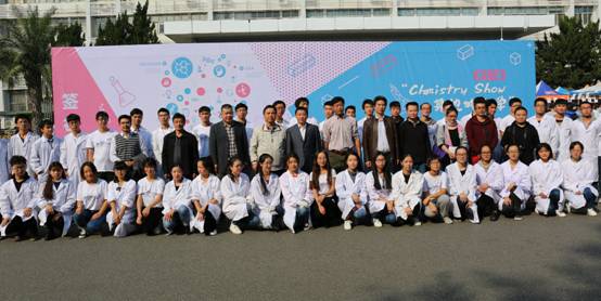 第十二届“Chemistry Show-身边的化学”实验展演在主楼前拉开帷幕。本次展演主题为“创新成就美好生活”。校党委宣传部部长喻芒清、学生工作处处长王林清、教务处副处长吕占峰、实验室与设备管理处副处长段平忠、校团委游萌,院党委书记吴太山、党委副书记黄金波、副院长周俊、院长助理、实验教学中心主任公衍生、各团队指导老师及学工组全体老师应邀出席开幕式。17级285余名本科生及附属小学100余名中小学生参加此次展演活动。展演开幕式由院学生会主席韩冰主持。