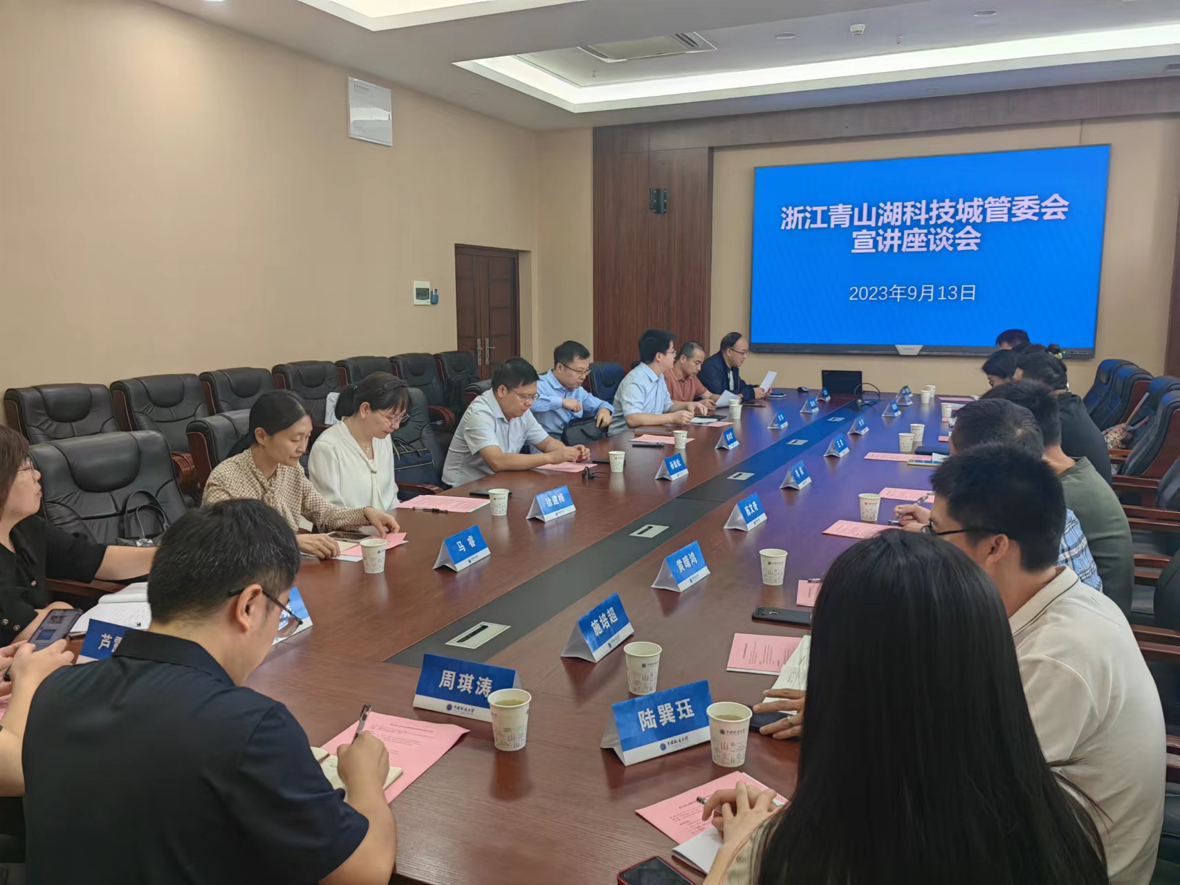 9月13日,浙江杭州青山湖科技城管委会副主任王力一行8人来校就人才政策、科技成果转化化等进行宣讲座谈。学院党委书记梁本哲、中地大资产经营有限公司党总支书记、董事长孙劲松、浙江中地大科技有限公司总经理李闯、学院副院长周炜及学院三级单位负责人及教师代表参加座谈会。副院长周炜主持会议。