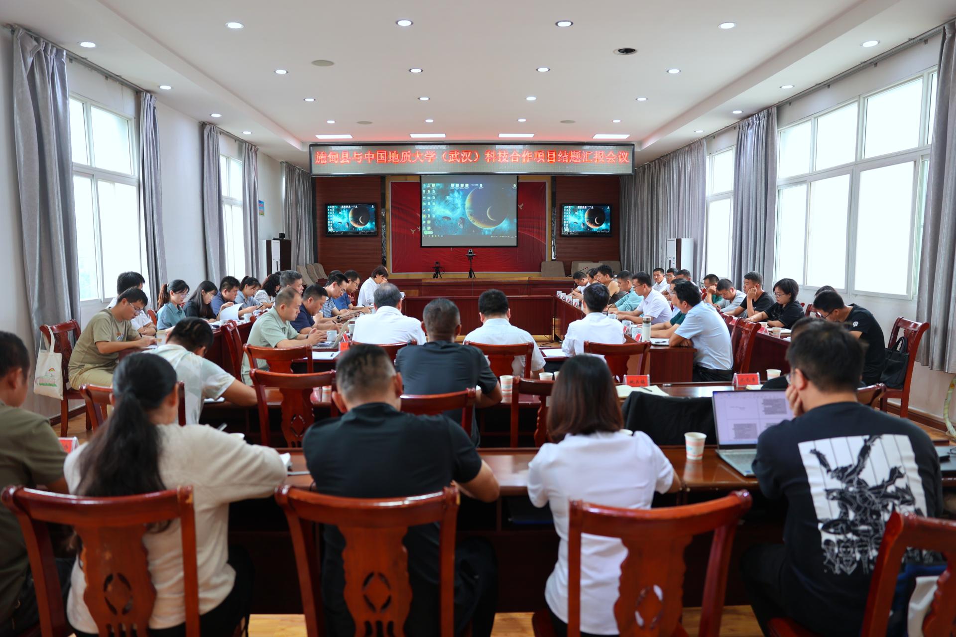 科技帮扶项目结题汇报暨施甸县产业高质量发展专家座谈会在县政府会议室举行。梁本哲一行及学校有关部门负责人、5个科技帮扶项目负责人以及施甸县县领导、县直有关部门及乡镇负责人等参加会议。会议听取了地大定点帮扶施甸县工作进展和科技帮扶项目研究及成果转化应用情况汇报。苏春满副县长感谢地大跨越千里的真情帮扶,对田欢等挂职干部的辛勤付出和帮扶成效给予高度肯定。梁本哲表示,地大高度重视帮扶工作,希望通过此次考察调研,能进一步深化校院与施甸县在人才培养与科学研究等方面的合作。