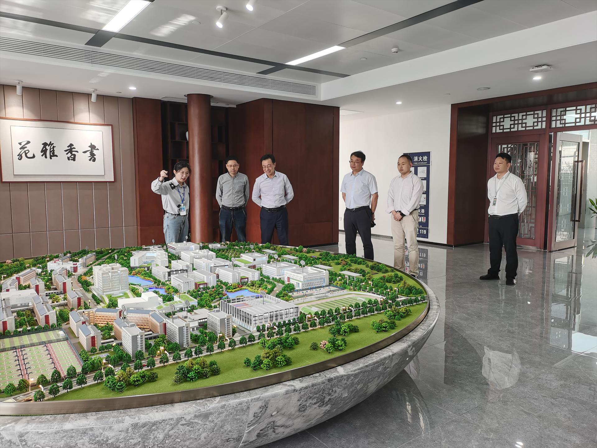 在结束对未来城校区图书馆、生环国重的参观后,一行人来到未来城校区办交流座谈。校区办王文起主任对朱校长的来访表示热烈欢迎,并从决策部署、规划建设、搬迁入住、管理机制等方面介绍了我校未来城校区建设与管理情况。座谈中,王主任围绕新校区管理、服务保障、生态综合治理等方面,胡院长围绕av网站